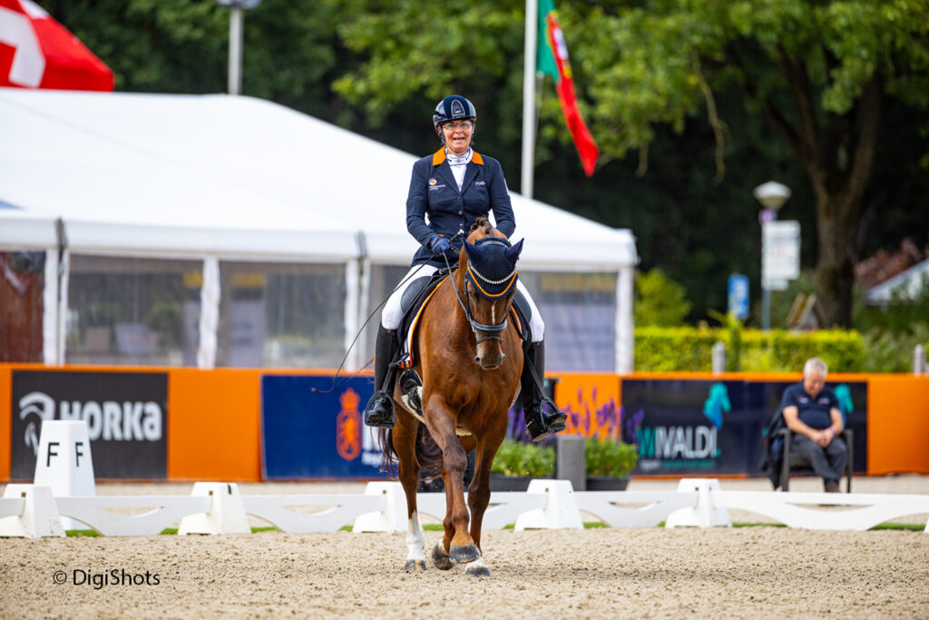 Van der Horst kwam in haar openingsproef uit op een prachtige score van 77,10%. Ze zette met haar tienjarige voshengst een constante verrichting neer, die bijna alleen het cijfer 8 en 7,5 op de protocollen deed verschijnen. Direct na afloop zei de van origine Friese amazone en ambassadrice van dit EK: “Ik mocht als startnummer 1 het spits afbijten. Dat is altijd even spannend, maar ik ben super tevreden over hoe de proef ging. Fonq vond de baan toch nog wat spannend, dus het was even wennen voor hem, maar ik denk dat we op deze wijze heel goed begonnen zijn. Nu is het afwachten wat het waard is.”